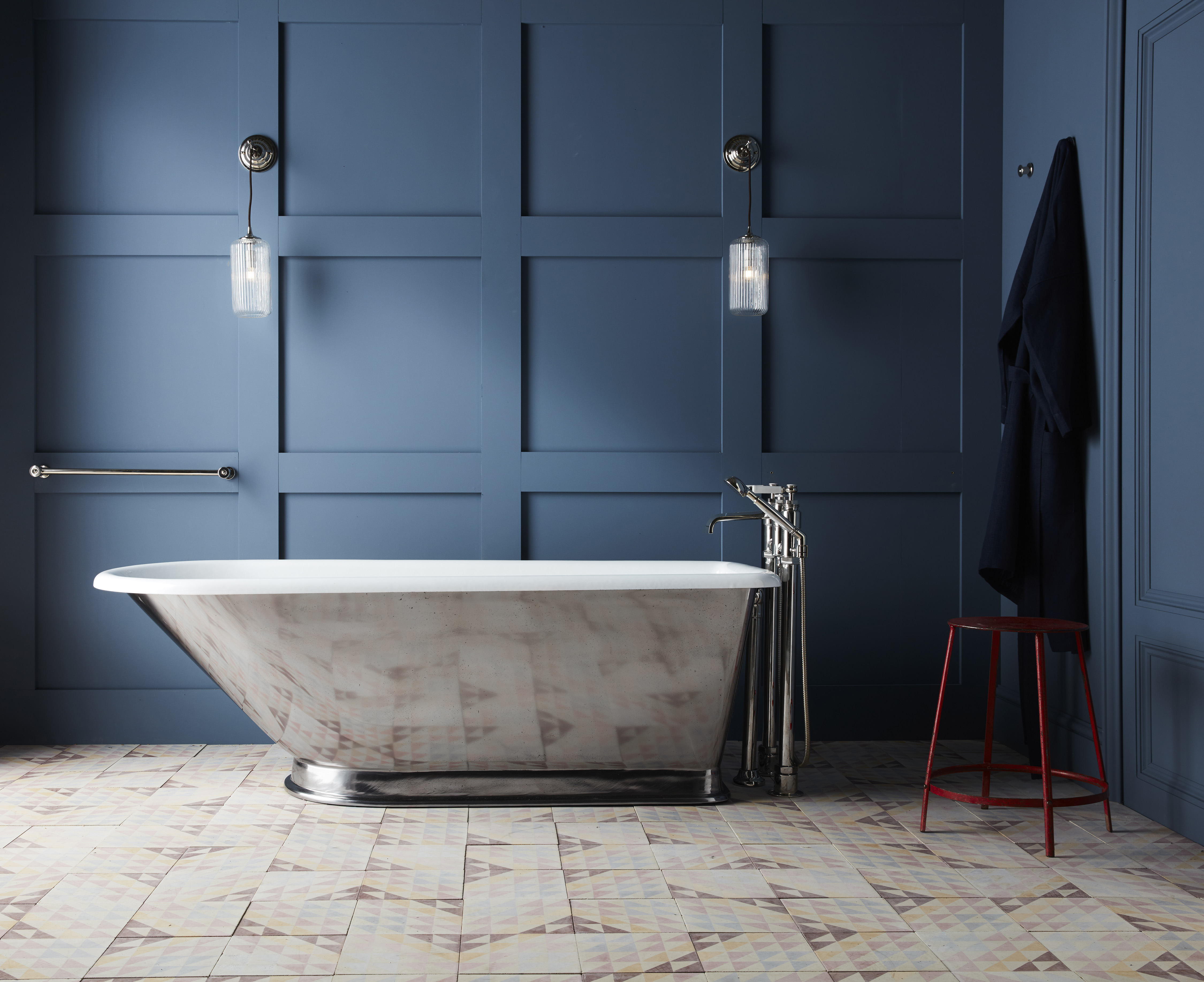 Finally, the Wandle tub was ergonomically designed around the human form, with the sloping end the same width from top to bottom in order to accomodate a bather’s shoulders and allow a bather’s head to rest comfortably. Wandle comes designed either with feet inspired by iron beams in a Victorian pump house, or a modern skirt which echoes the bulbous bow of a ship. Like all of Drummonds’ cast-iron baths, each Wandle is made in a traditional process involving casting the raw metal and then shot-blasting and enameling the material with a dry-frit process that gives a snow white, durable enamel surface. The exterior can be painted, primed, or polished to order.