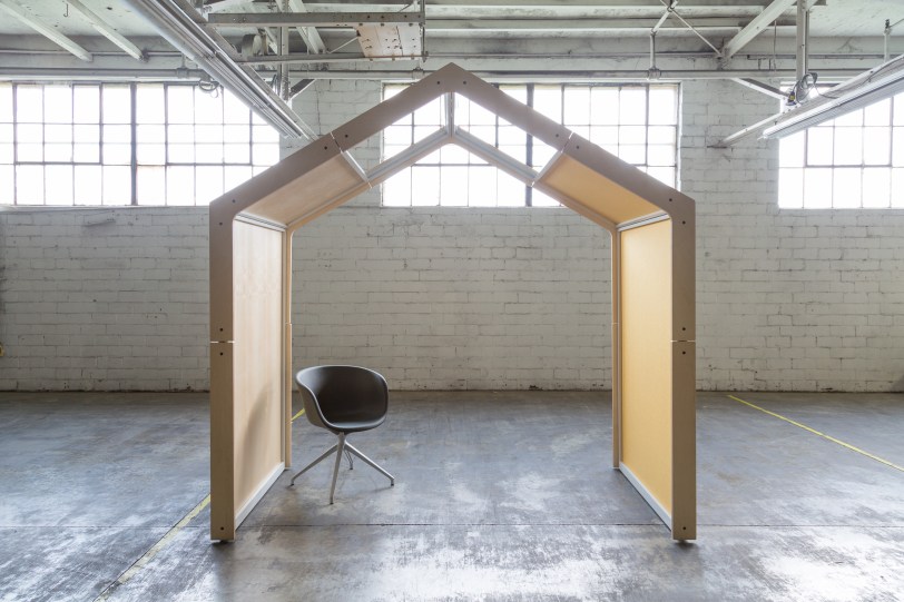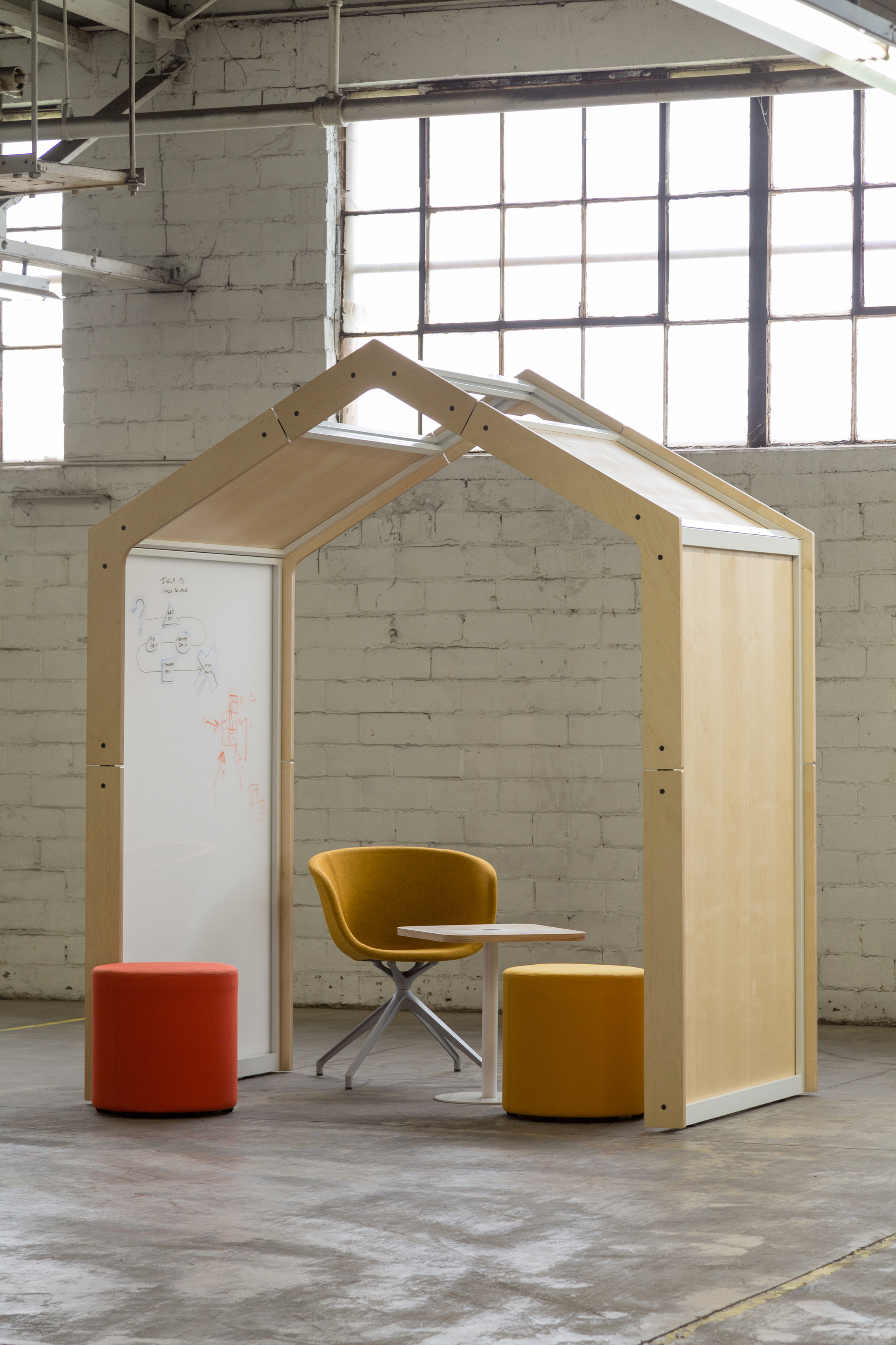 Taking the hybrid office concept to the next level, the easy-to-install, versatile, shed-like space offers a haven for workers looking to avoid distraction. It can also be used as a cozy meeting area as well as a creative, iconic space in open offices. The customizable design offers a choice of writable surfaces, sound absorbing panels, warm wood panels, upholstery, and laminates. It measures 4′-deep and 8.4′-high and comes in a choice of 6′ or 8′ wide.