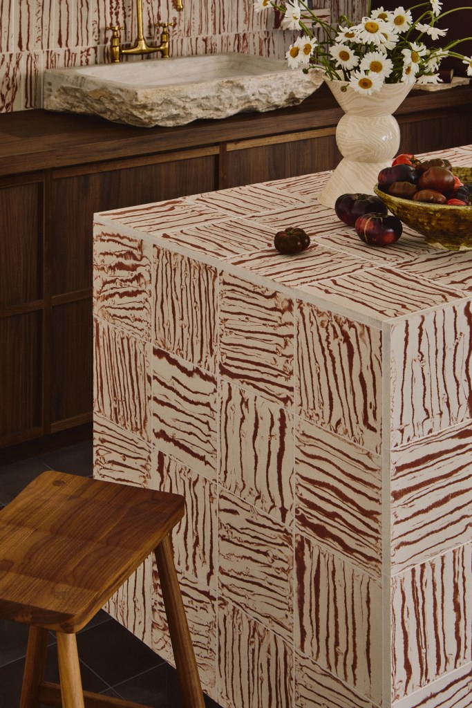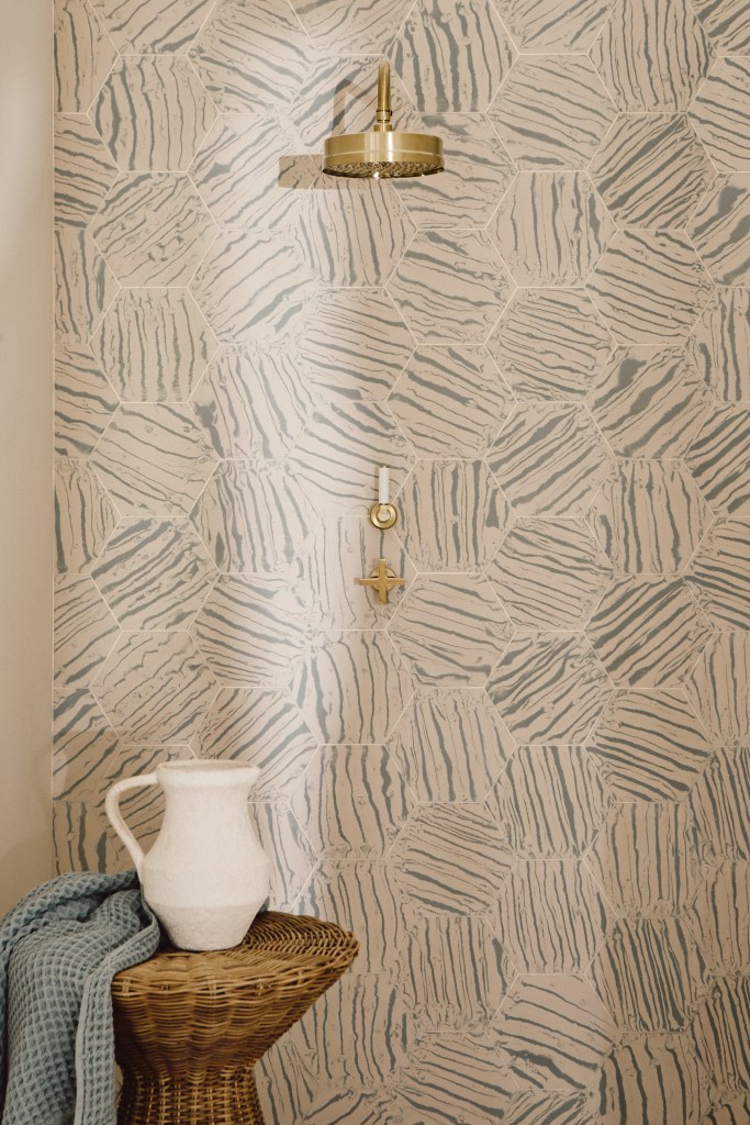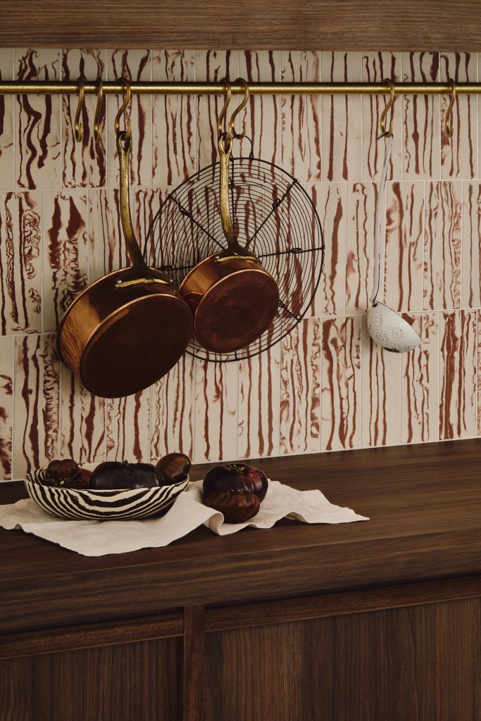 The Pour tile collection was created in collaboration between the UK tile maker Bert & May and the London-based ceramic and houseware brand Henry Holland Studio lead by Henry Holland (above). Pour features hand-poured encaustic and printed glazed tiles inspired by the art of nerikomi —which involves stacking and cutting colored pieces of clay to form different patterns. The collection for walls, backsplashes, and floors involves hand mixing and then pouring two pigments together into the moulds, resulting a unique pattern every time. It is available in four colors, Rosemary, Mineral Blue, Rust, and Purple Brown, in a range of shapes and sizes.