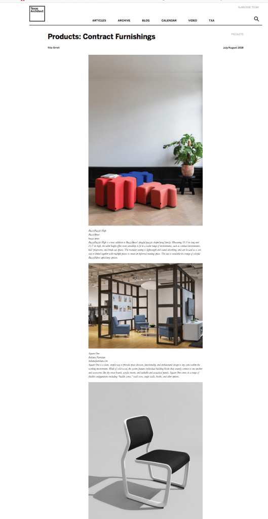 Below are samples of my freelance work for various publications, including SNAP, Architectural Record, Texas Architect, Contract, and others. I am also available as a copywriter for clients.